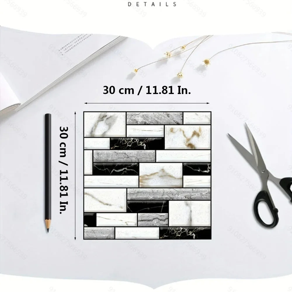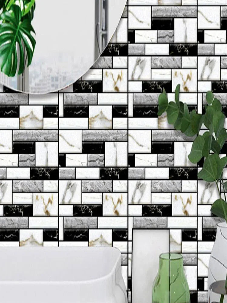 10 szt. samoprzylepnych paneli ściennych 3D PVC imitujących płytki. Wodoodporna okleina do kuchni, łazienki i na szafki.