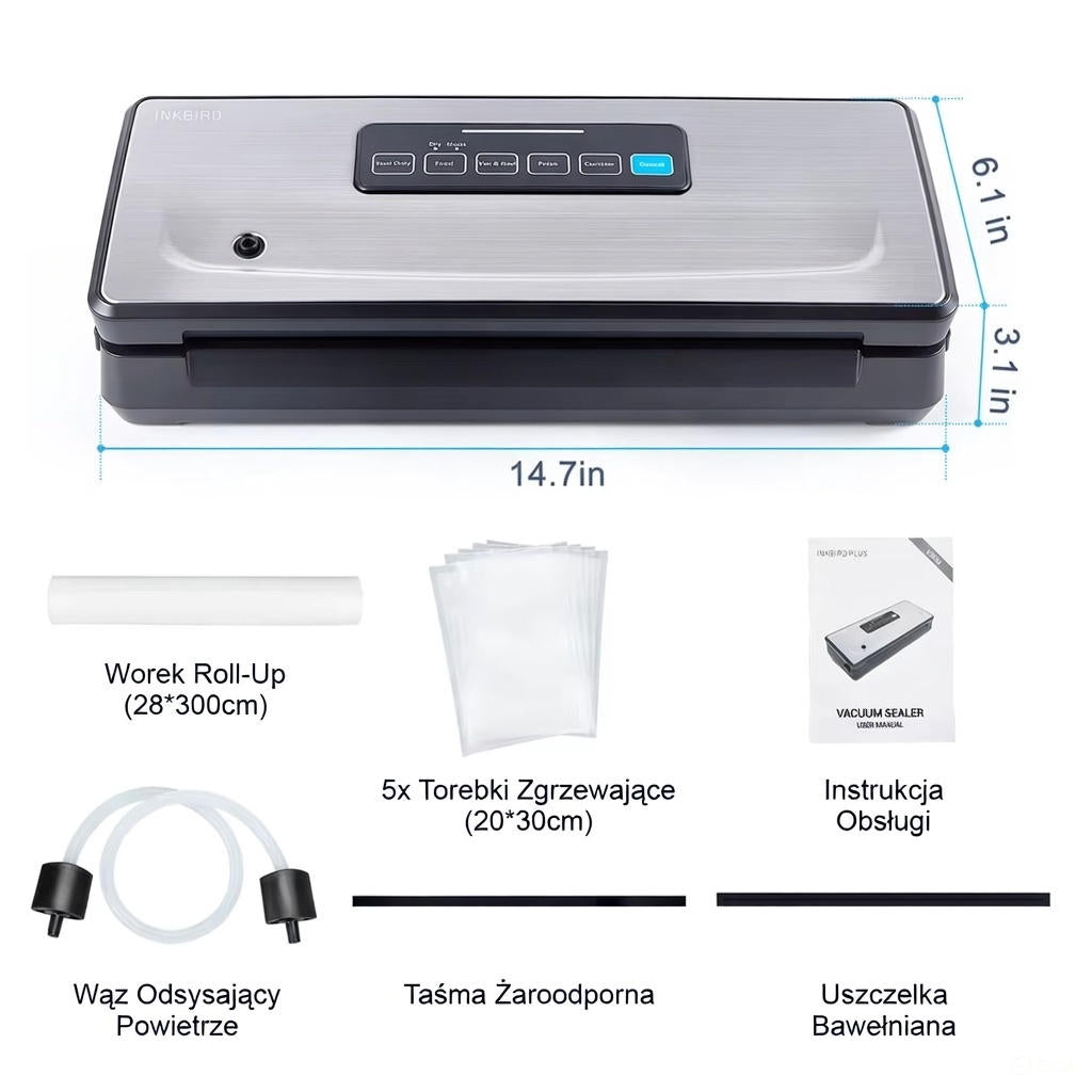 Zgrzewarka próżniowa INKBIRD. Pakowarka do żywności z trybami: suchy, wilgotny, pulsacyjny.